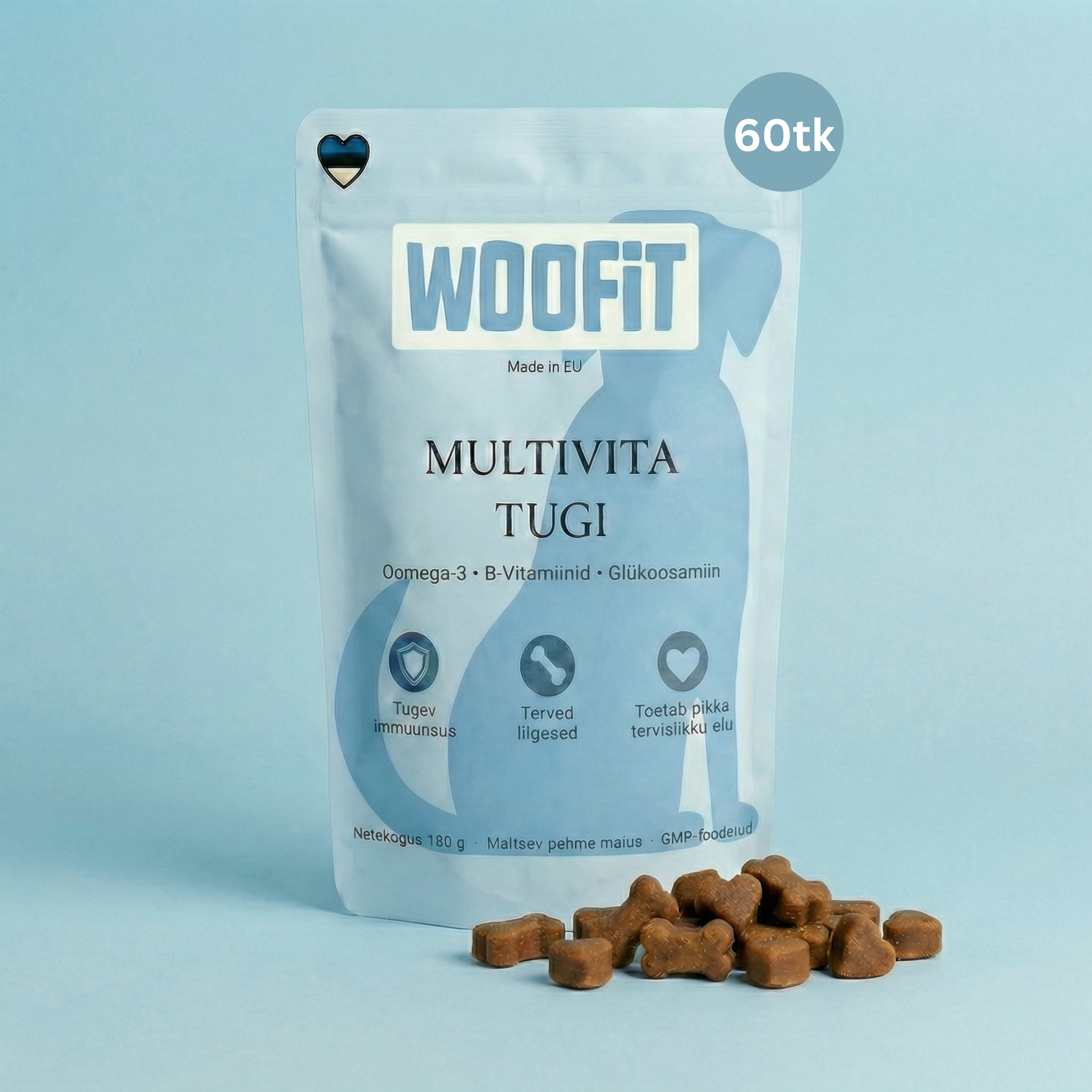 Woofit teeb lihtsaks: üks maitsev maius päevas aitab toetada koera tervist ja pikemat, energilisemat eluiga.